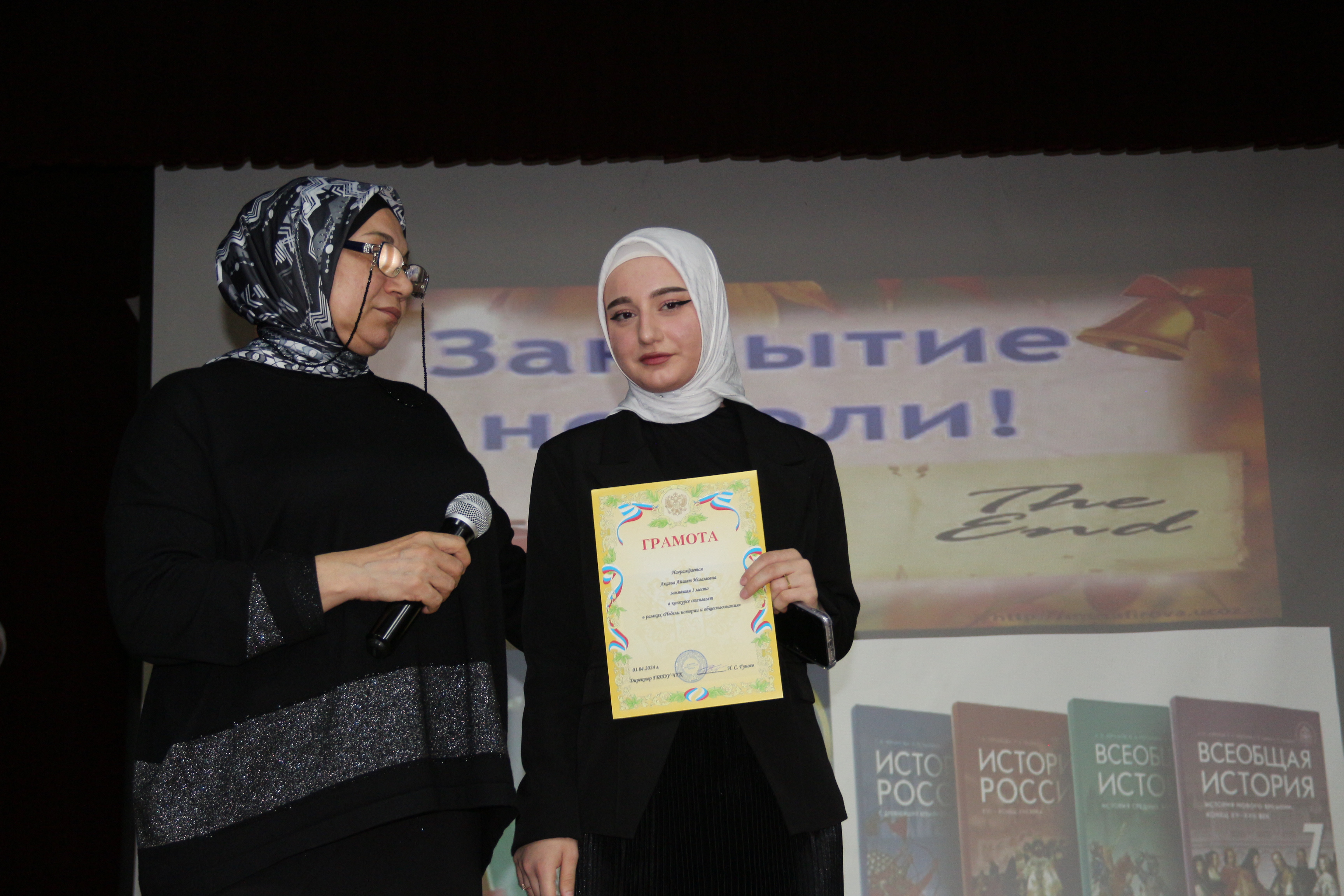 29 марта прошло официальное закрытие Недели истории и обществознания. В ходе мероприятия, прошло чтение стихов М.Исаковского «Куда б ни шёл», показаны документальные фильмы посвященные ВОВ, и конечно обзор мероприятий Недели. В завершении мероприятия прошло торжественное награждение студентов, занявших призовые места в олимпиаде, брейн-ринге и конкурсе стенгазет, который проходил на протяжении всей недели. Также были отмечены студенты принявшие активное участие в мероприятиях Недели.