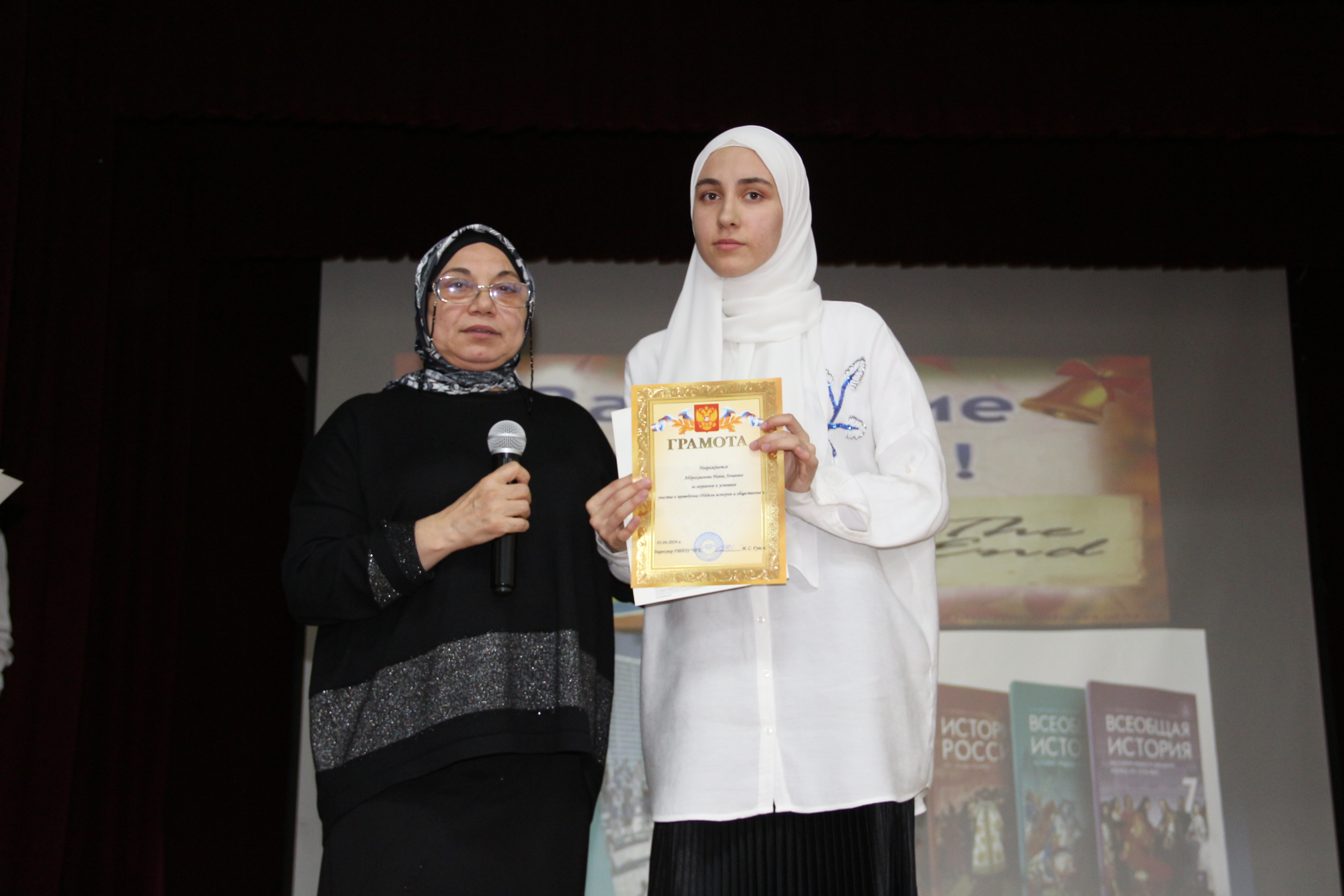 25 марта открыла Неделю Шахмерзаева З.А., в ходе которого ведущие провели обзор выдающихся историков и социологов, рассказали краткую характеристику наук истории и обществознания. Мусаева Макка прочитала стихотворение Константина Симонова «Родина». Прошел просмотр видео Редьярда Киплинга «Заповедь». А также была организована Викторина со зрителями «О праве в шутку и всерьёз».
