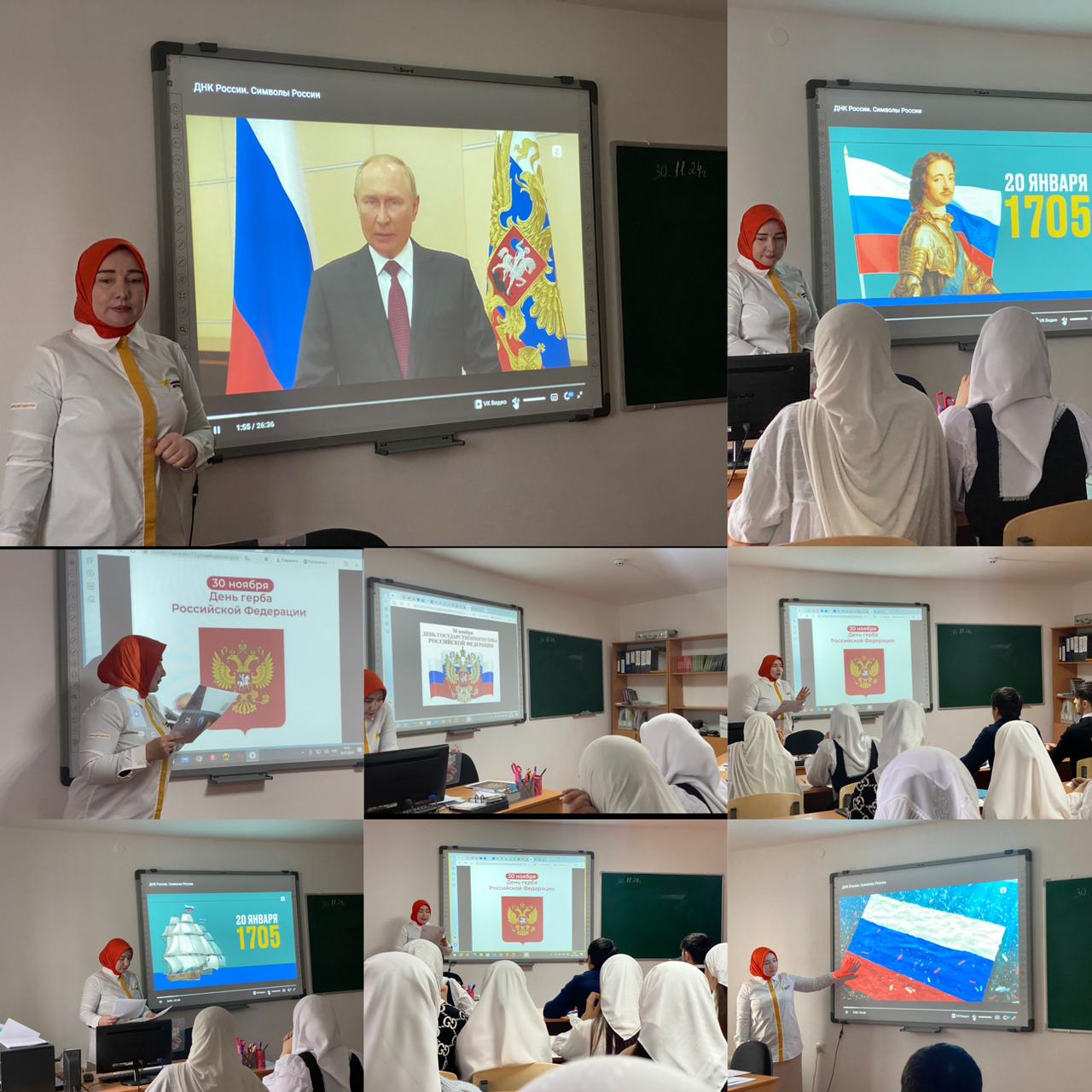 29.11.202430 ноября отмечается День Государственного герба Российской Федерации – отличительного знака нашего государства.Государственный герб Российской Федерации является официальным государственным символом Российской Федерации.Во все времена символы государства были олицетворением значимости, судьбы и будущего державы. Верность государственным символам и умение пронести их сквозь столетия - необыкновенная гордость и залог сохранения традицийи единства всех народов Российской Федерации!Советник директоров по воспитанию и взаимодействию с детскими общественными объединениями ГБПОУ «Аргунский государственный техникум» Джабраилова Л.М.,организовала и провела мероприятие со студентами 1-х курсов, просмотр видеоролика «ДНК России» на тему становления российской государственности с последующим обсуждением видеоролика. Цель мероприятия: проявлять деятельное ценностное отношение к историческомуи культурному наследию своего и других народов России, традициям, праздникам!