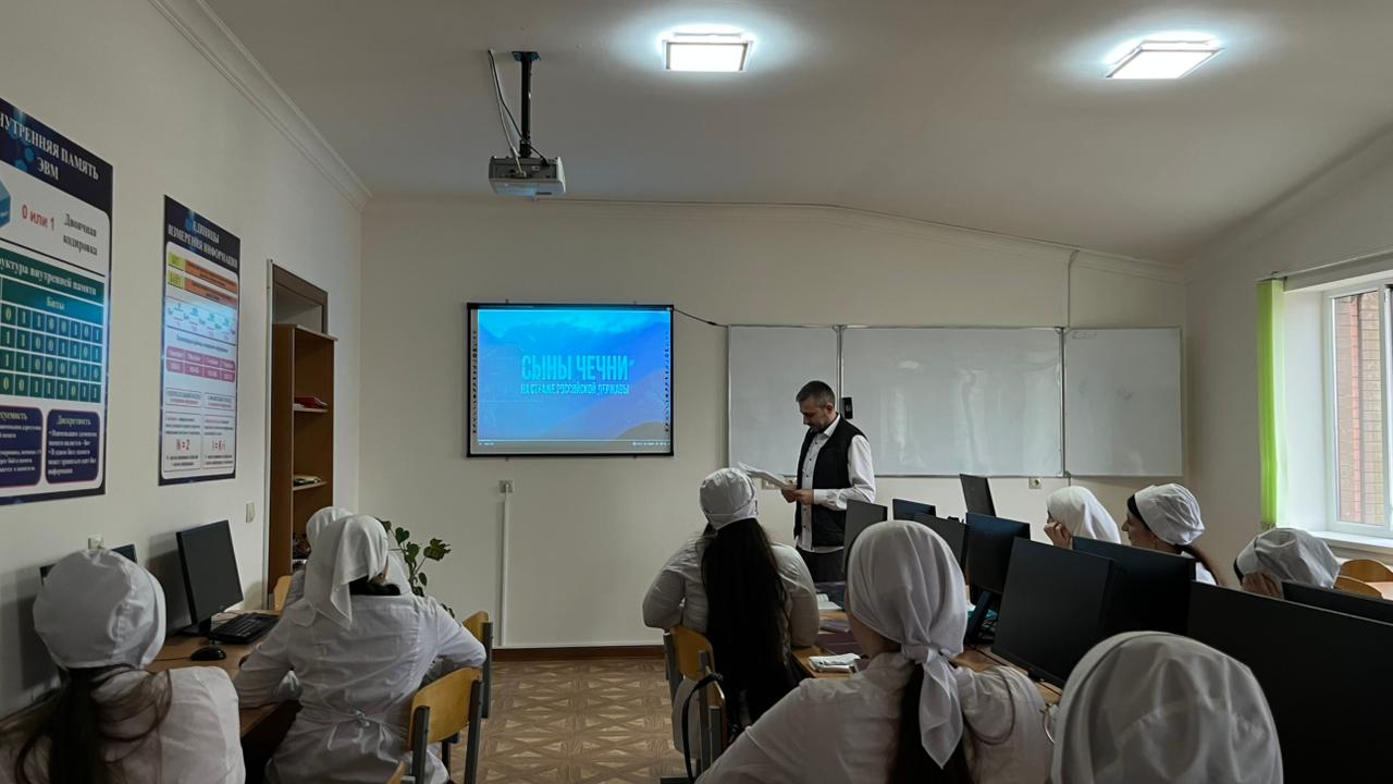 В рамках патриотического воспитания молодежи в нашей школе прошел кураторский час «Сыны Чечни на страже Российской Державы». Мероприятие посвящено подвигам выдающихся личностей чеченского народа, которые в разные исторические периоды проявили мужество и преданность своей стране.