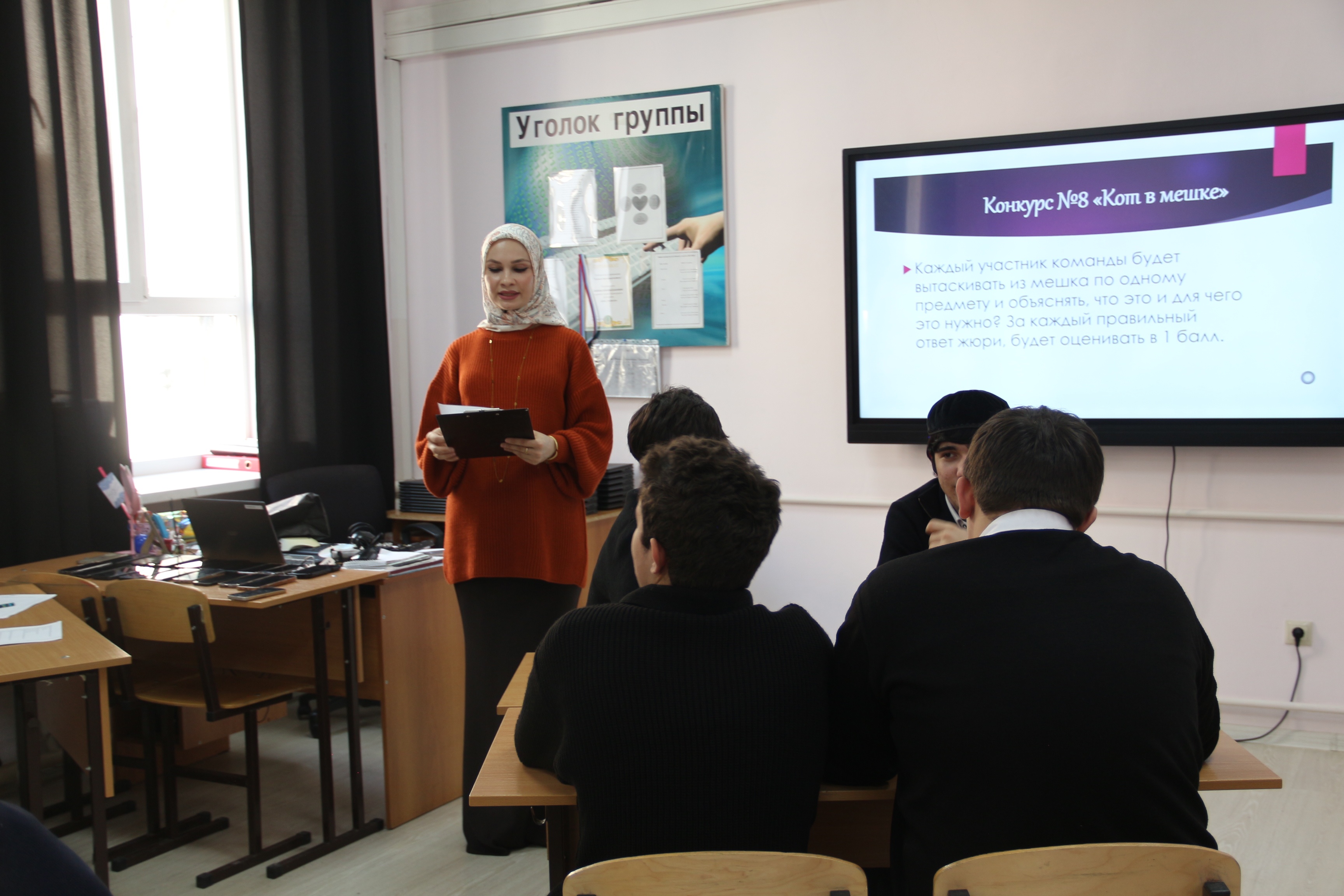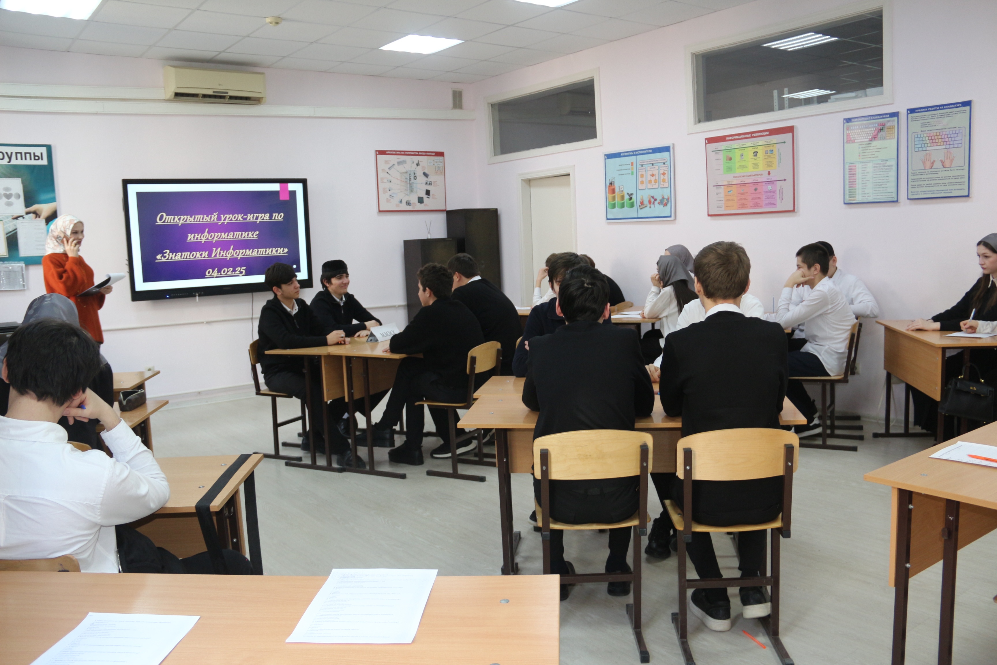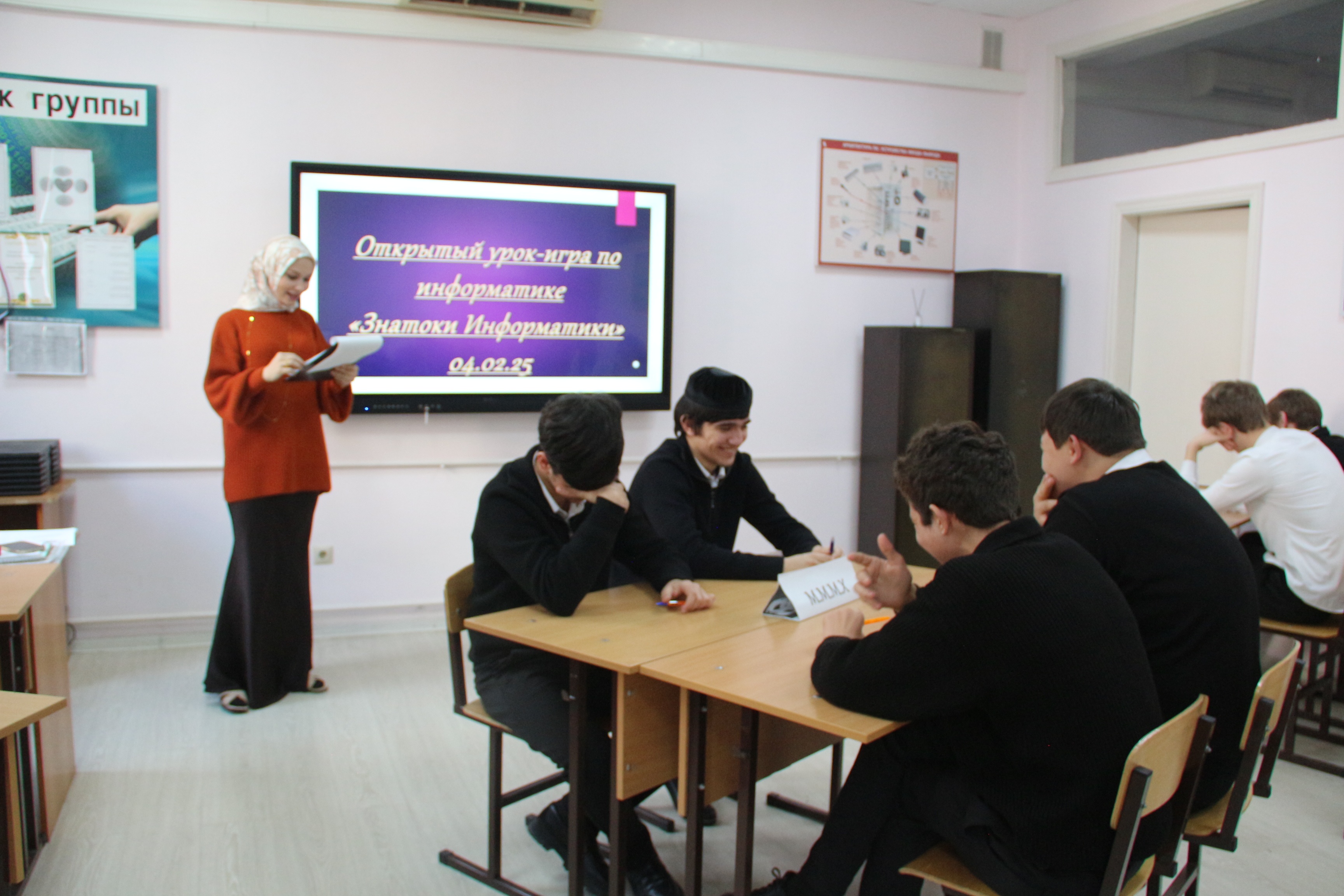 5 февраля Дадаева А.С. провела урок-игру «Знатоки информатики». Игра состояла из 8 конкурсов которые включали различные разделы информатики, в виде вопросов, ребусов, кроссвордов и филвордов. Последним стал конкурс «черный ящик». В игре приняли участие две команды студентов «Кибератака» и «МММХ». По итогам всех состязаний победила команда «Кибератака».